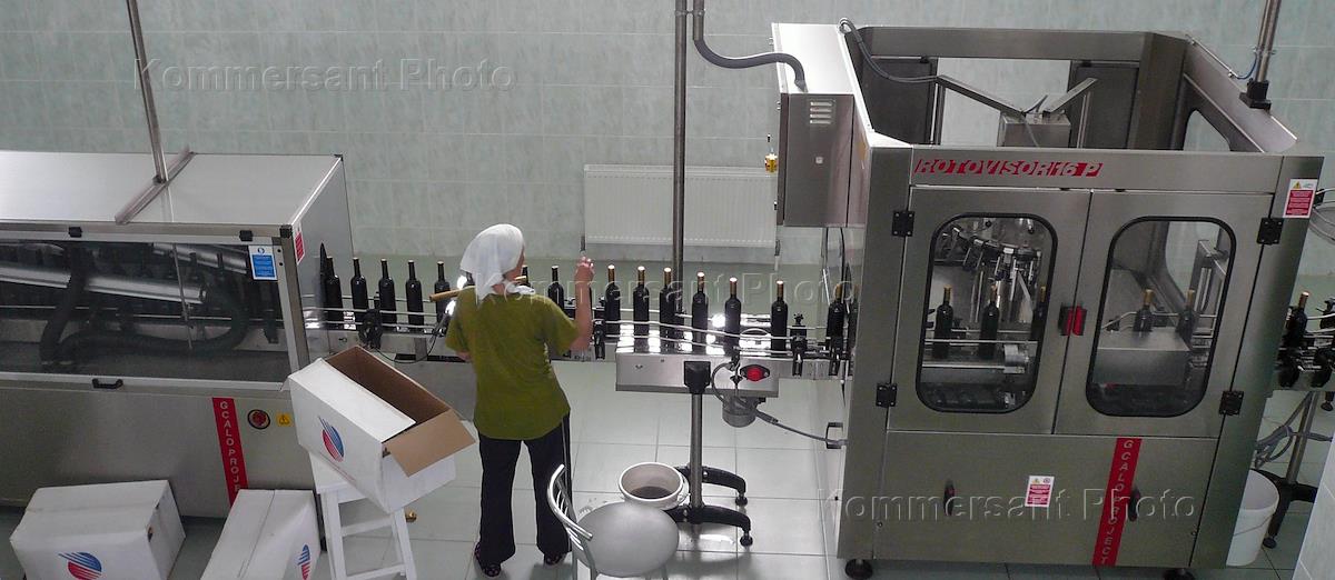 Цех розлива вина в винодельческом совхозе "Вина Кубани" под Новороссийском.