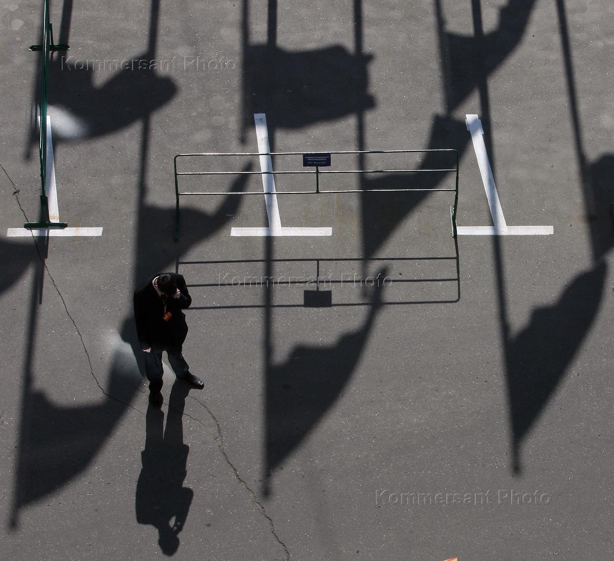 Жанровая фотография. Человек стоит на автомобильной парковке у центрального офиса ОАО "НК "Роснефть".