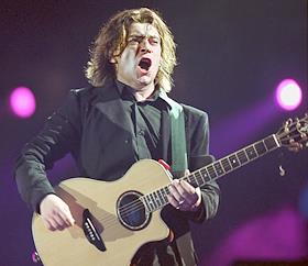 Лидер рок-группы "Сплин" Александр Васильев выступает во время совместного концерта с группой "Би —…