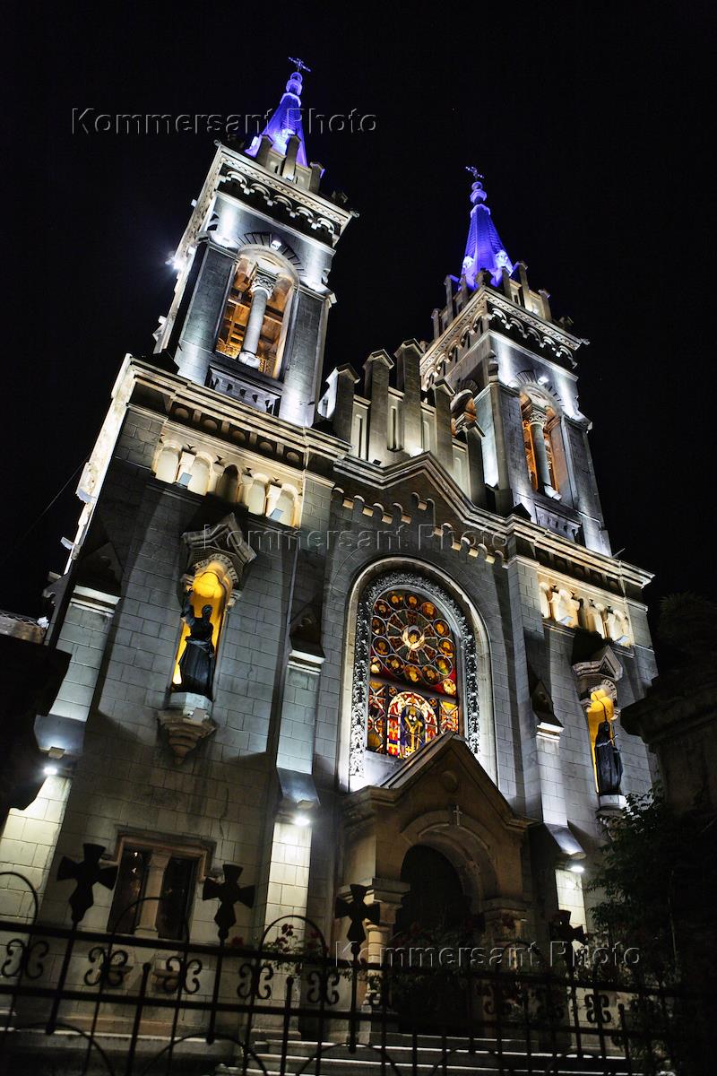 Виды ночного Батуми. Церковь.