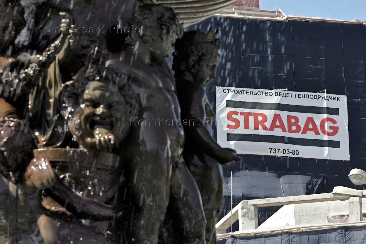 Плакат строительного генподрядчика Strabag на одном из домиков для строителей.