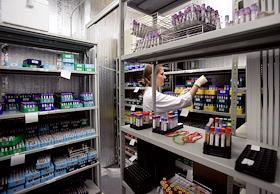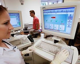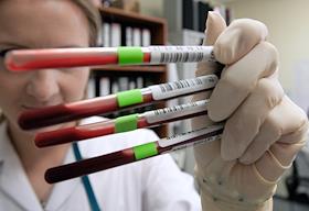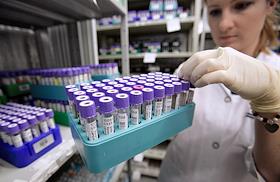 Сотрудница Независимой лаборатории "ИНВИТРО" во время лабораторной диагностики.
