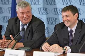 Директор "Уральского вагоностроительного завода" Николай Малых (слева) и председатель Правительства…