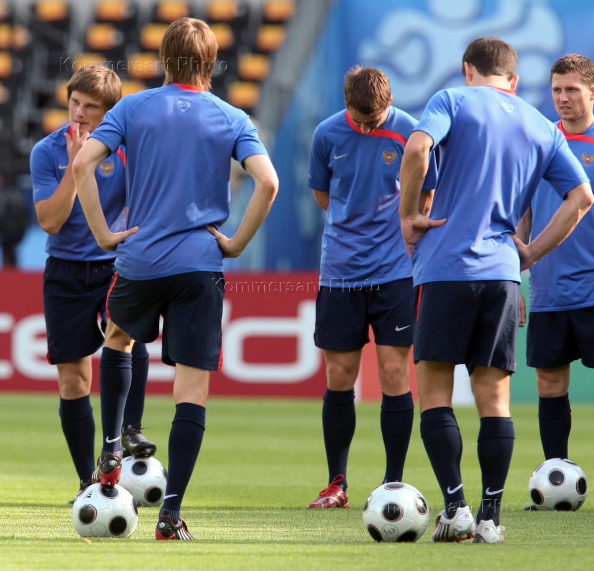 Нападающий российской сборной Андрей Аршавин (слева) на тренировке сборной команды России перед…