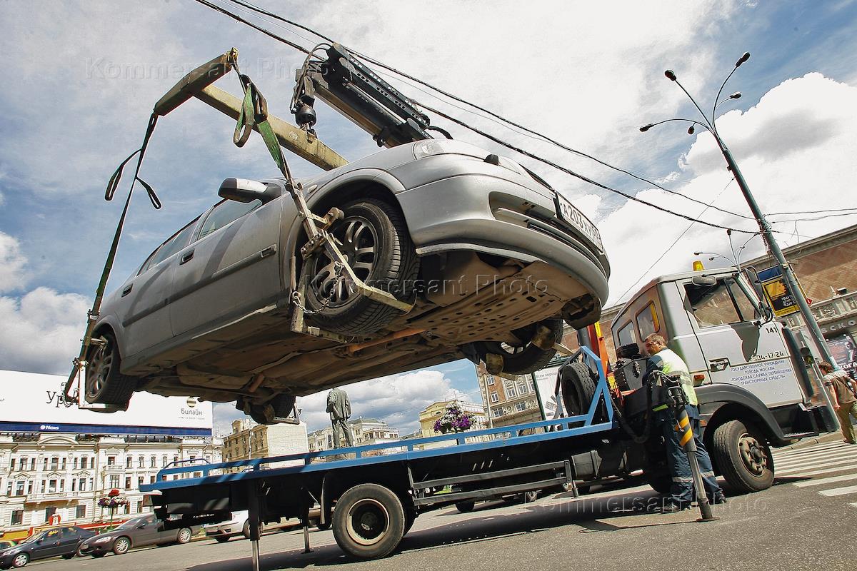 Эвакуация машин с центральных улиц Москвы в связи с предстоящим полуфинальным матчем Евро-2008 между сборными России и Испании.