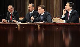 Президент России Дмитрий Медведев (слева) и председатель Комиссии Европейских сообществ Жозе Мануэл…