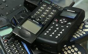 Одни из первых моделей сотовых телефонов в музее "Связи" компании "ВолгаТелеком".