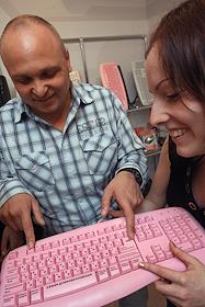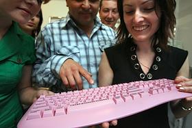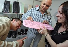 Продукция торговой марки "SVEN". Розовые клавиатуры "SVEN" в выставочном зале компании.