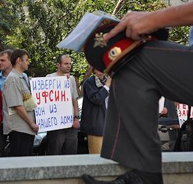 Экономика и бизнес Пикет жильцов общежития с Ясного проезда, 19 на Калужской площади. 24 и 25 июля они были выселены сотрудниками УФСИН во главе с начальником ЖКО УФСИН по г. Москве А. Гербачем.