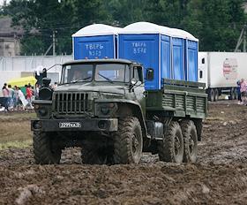 Рок-фестиваля "Нашествие - 2008" в поселке Эммаус. Кабинки биотуалетов на кузове грузовика.