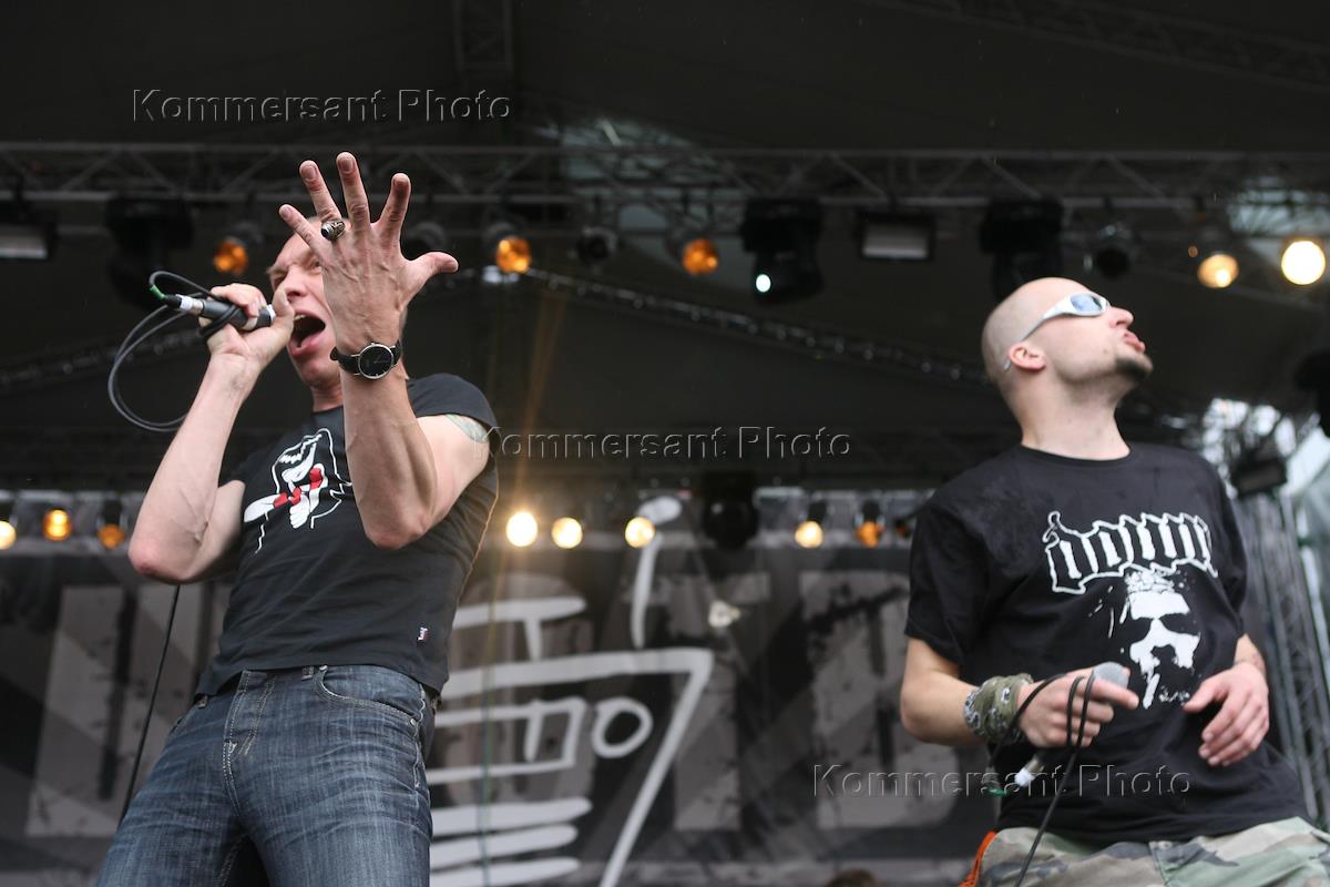Рок-фестиваль "Нашествие - 2008" прошел в поселке Эммаус. Участники группы "Би 2" Лева (слева) и…
