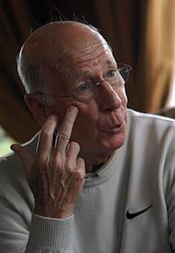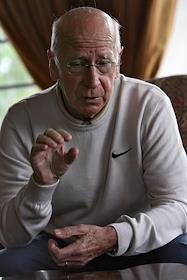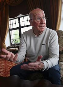 Вице-президент футбольного клуба "Манчестер Юнайтед" сэр Бобби Чарльтон во время интервью в гольф…