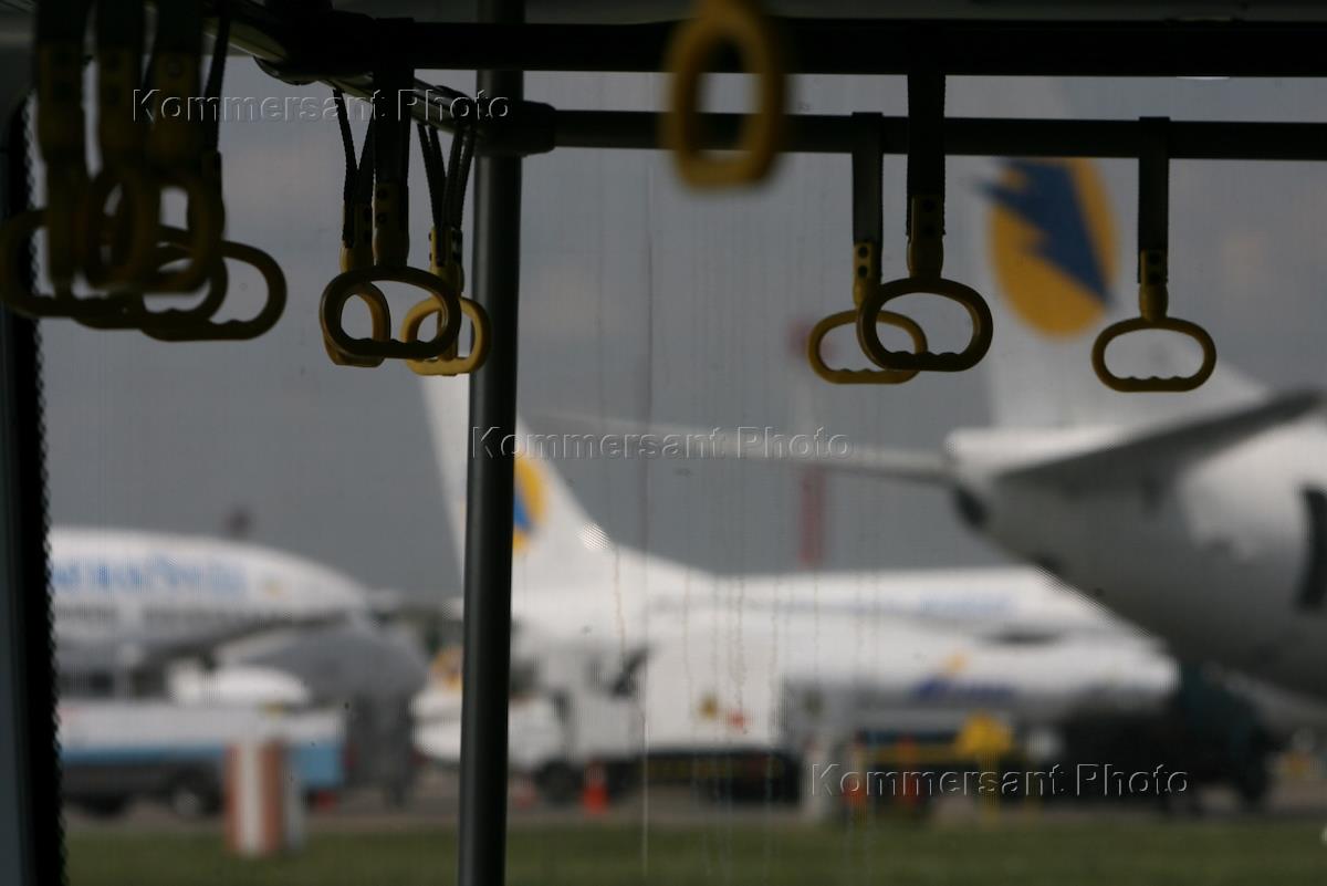 Вид на аэропорт "Борисполь" из салона автобуса.