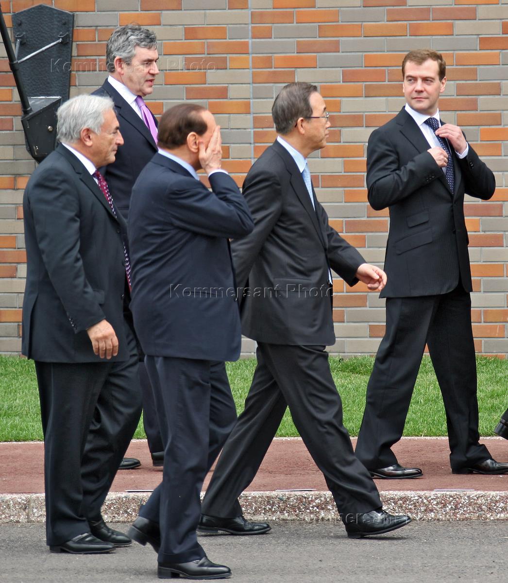 Президент Франции Николя Саркози перед совместным фотографированием участников Саммита "Большая…