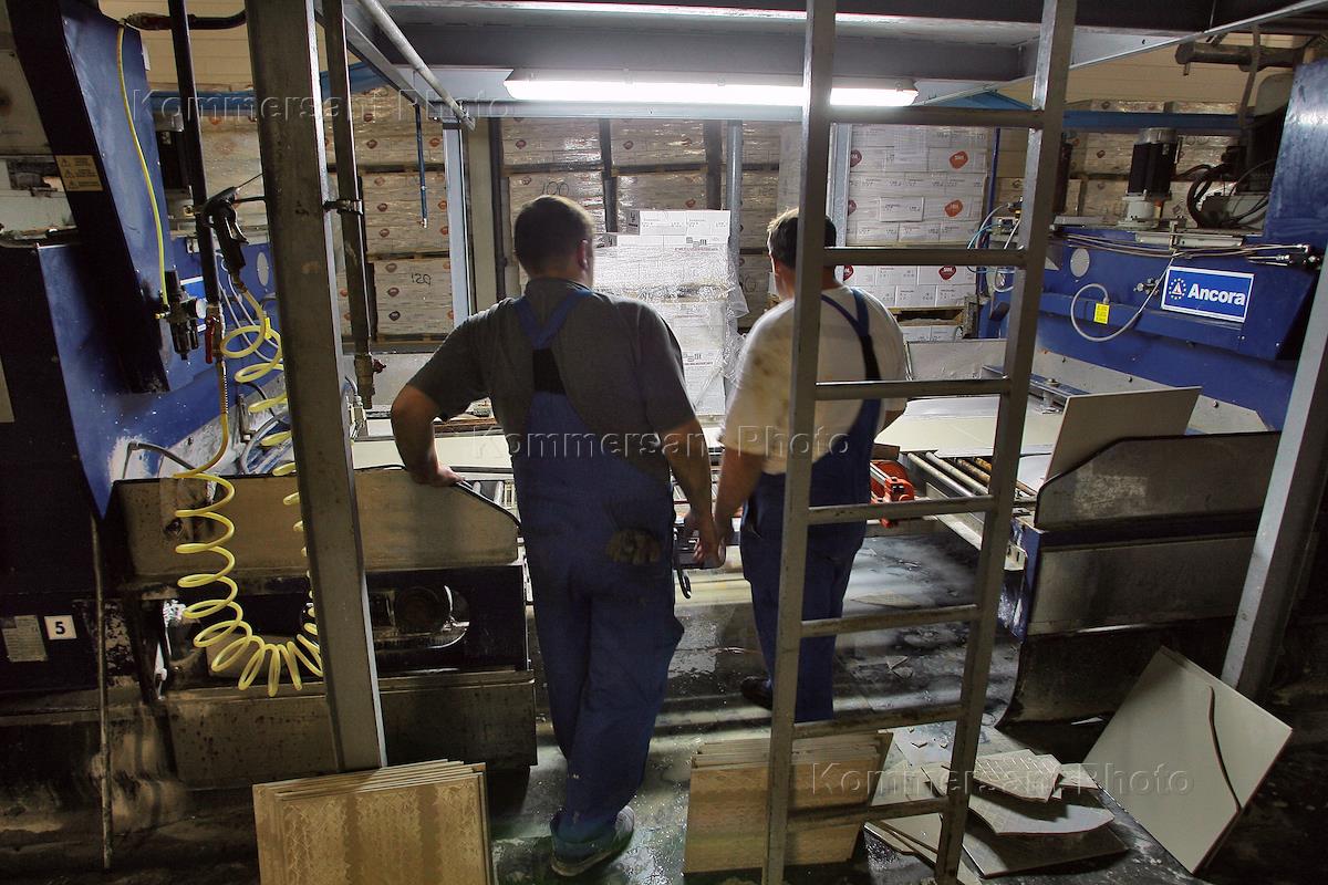 Завод по производству керамического гранита "Kerama Marazzi". Конвейер в цехе формовки изделий.