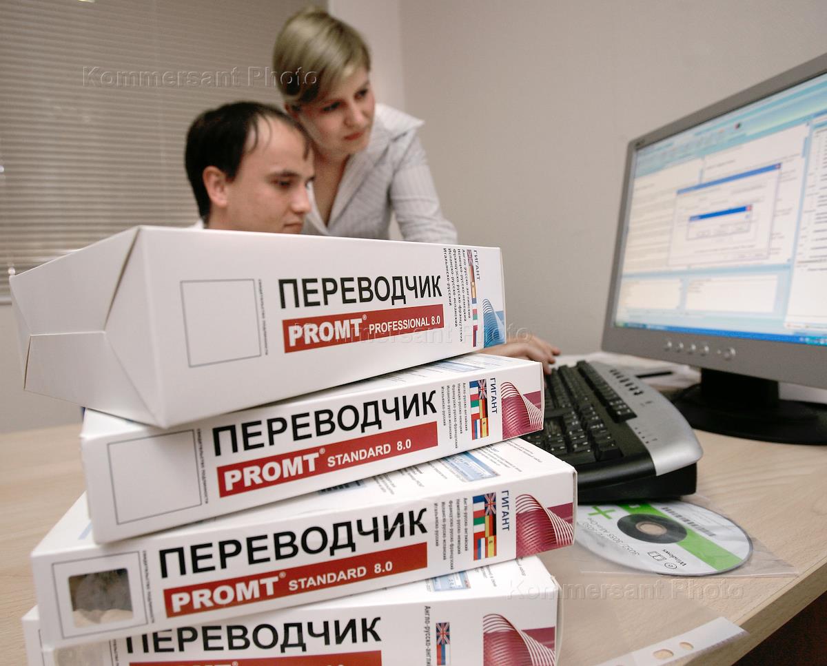 Сотрудники московского офиса компании "ПРОМТ" представляют разработки своей компании.