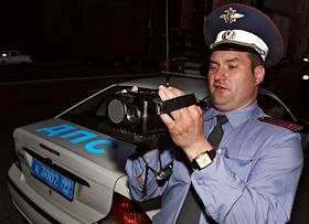 Сотрудник Дорожно-патрульной службы (ДПС) с оптическим прибором "Визир" для фиксации скорости…