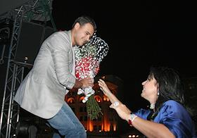 Президент "Крокус Интернэшнл" Арас Агаларов (слева) с супругой Ириной (справа) на диска своего сына,…