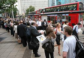 Забастовка в лондонском метро. Пассажиры при посадке в автобус.