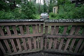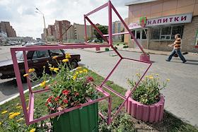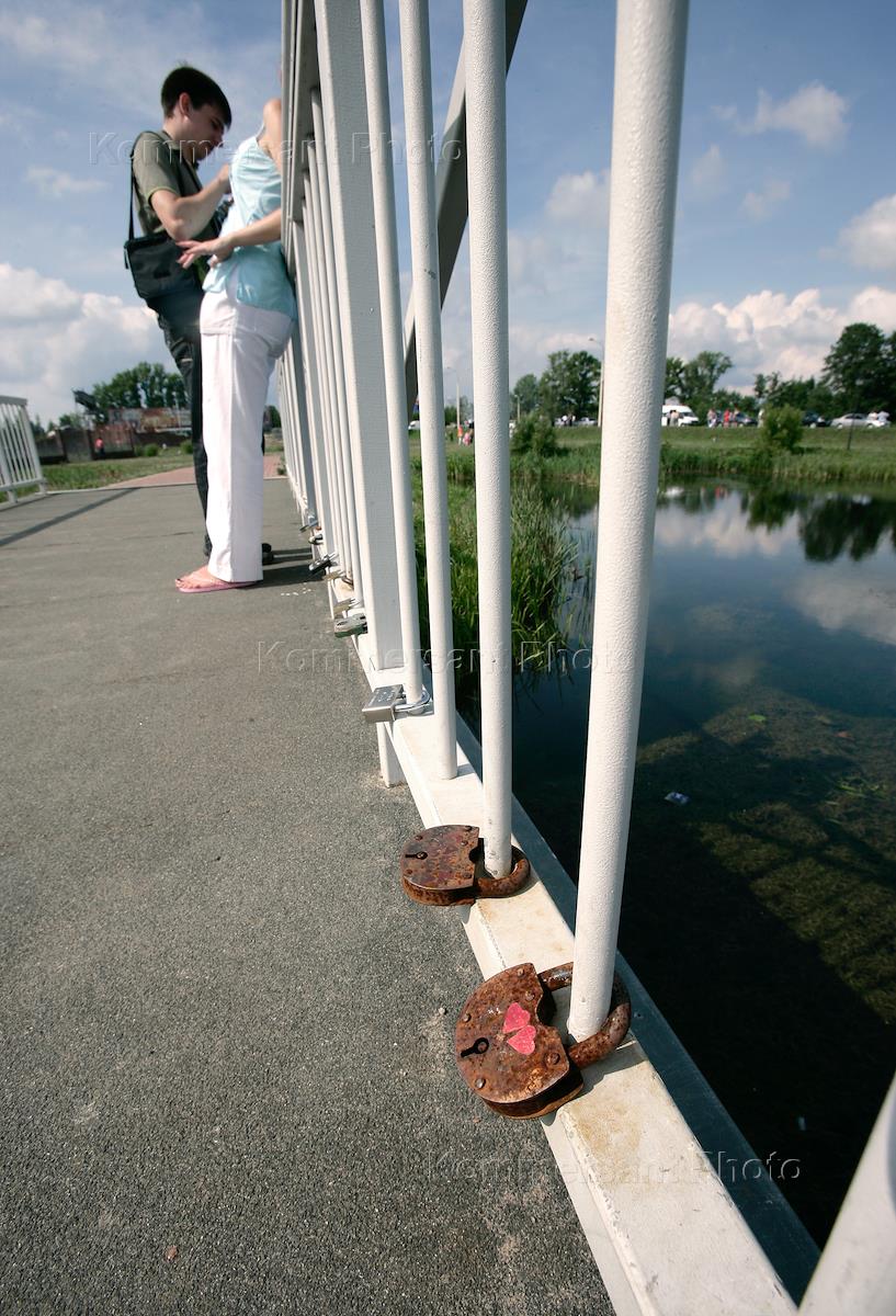 Виды города Дубна. На ограде моста "замочки на счастья", которые вешают молодожены.