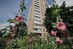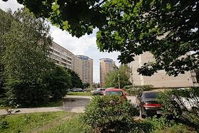 Виды города Дубны. Автомобили припаркованные во дворе жилого дома.