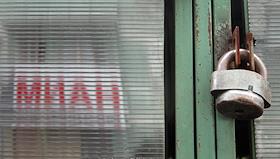 Замок на двери одного из офисов компании "Миан" в Москве.
