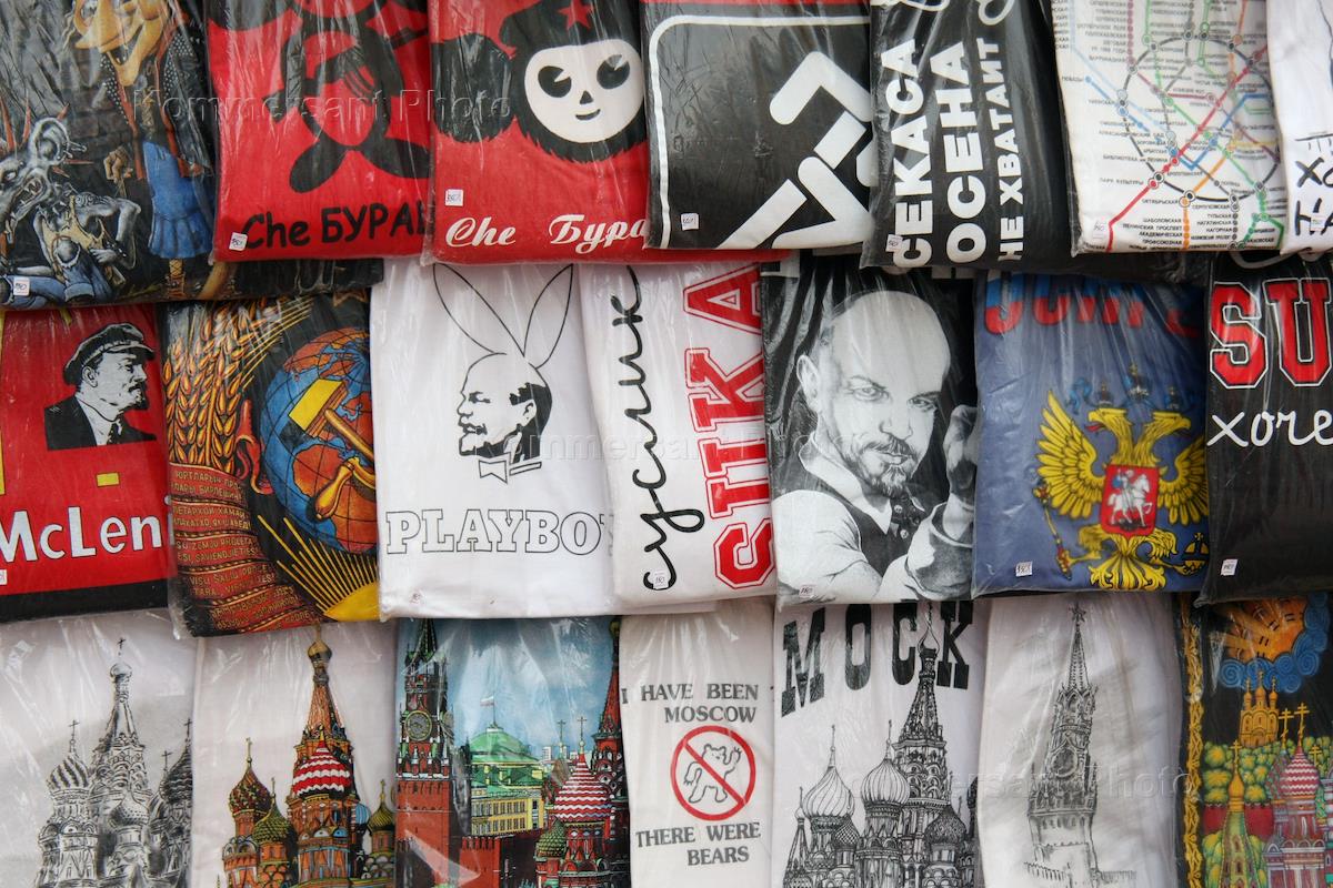 Торговля сувенирами на улице Старый Арбат. Матрешки с портретами политических деятелей.