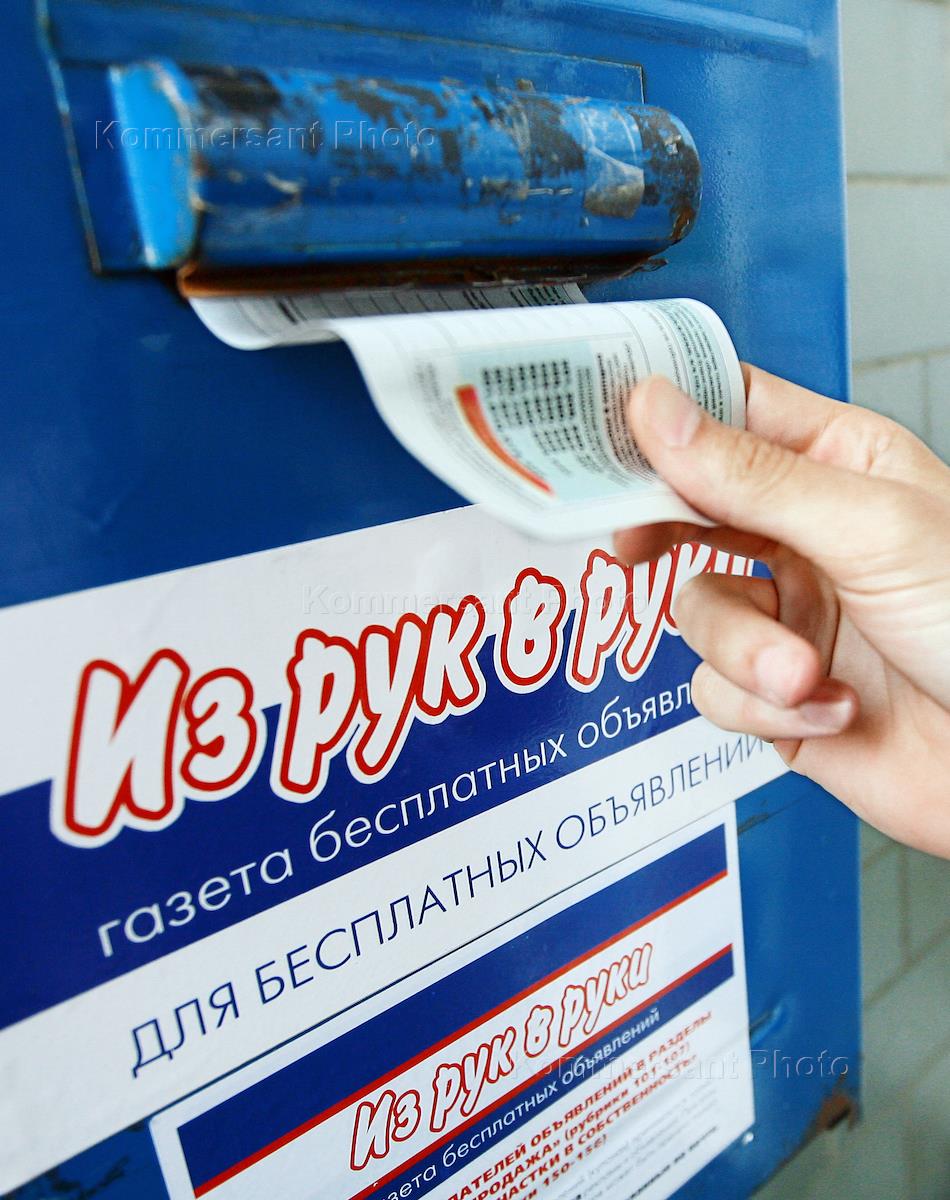Ящик для подачи бесплатных объявлений в газету "из рук в руки" на стене офиса компании…