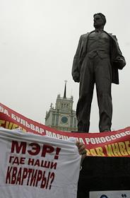 Участники объединенного митинга "обманутых соинвесторов" на Триумфальной площади. Плакат "Мэр! Где…