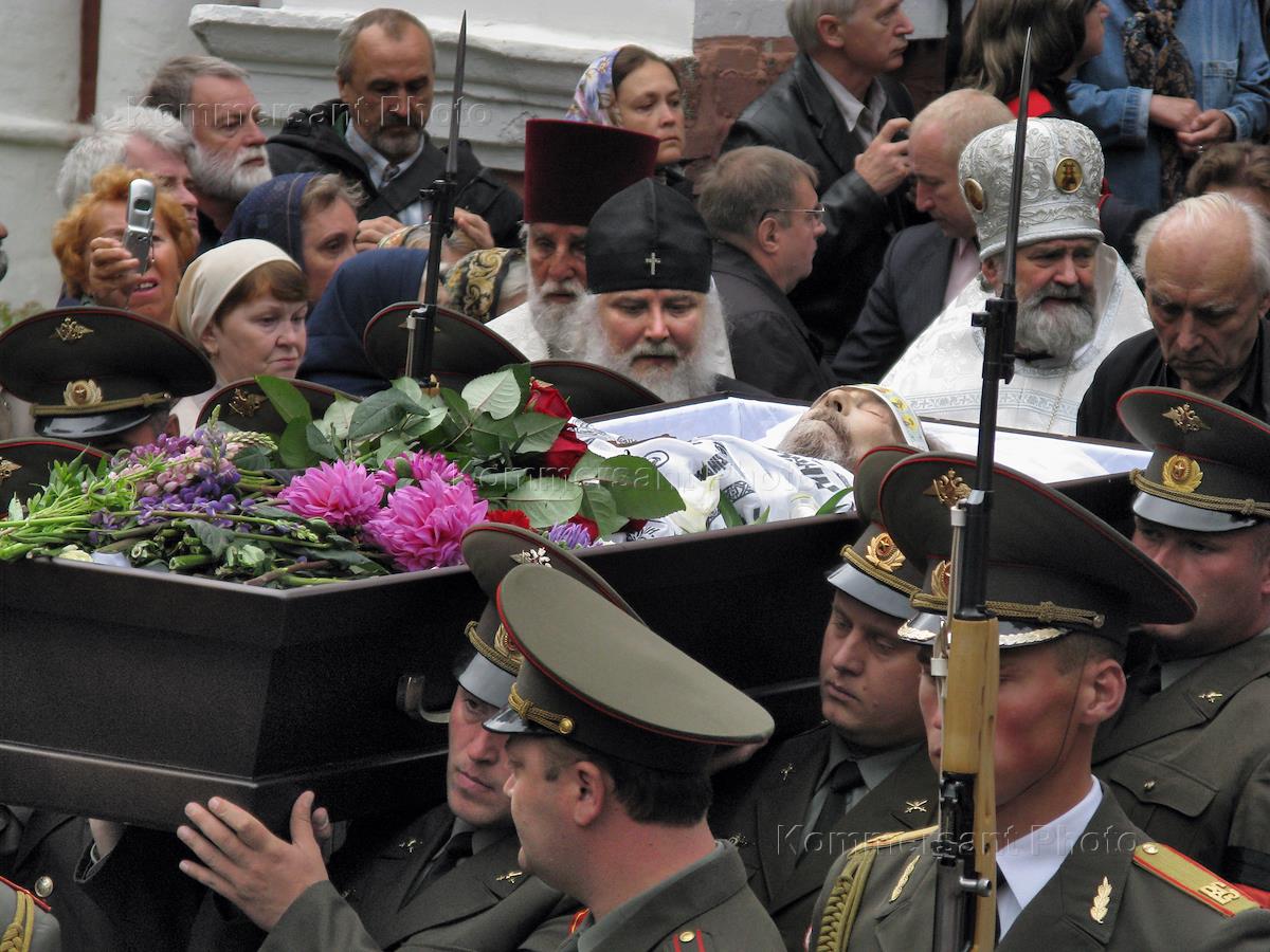 Похороны писателя Александра Солженицына на кладбище Донского монастыря. Траурная церемония…