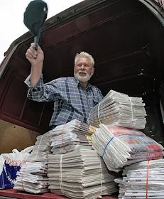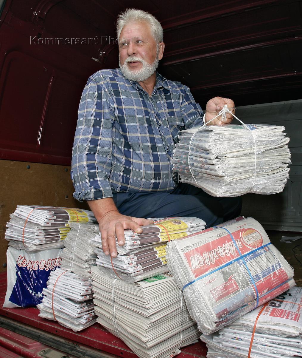 Погрузка новых номеров газеты "Из рук в руки" в грузовик для распространения.