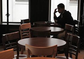 Посетители в кафе "Кофеин" на улице Воздвиженка.