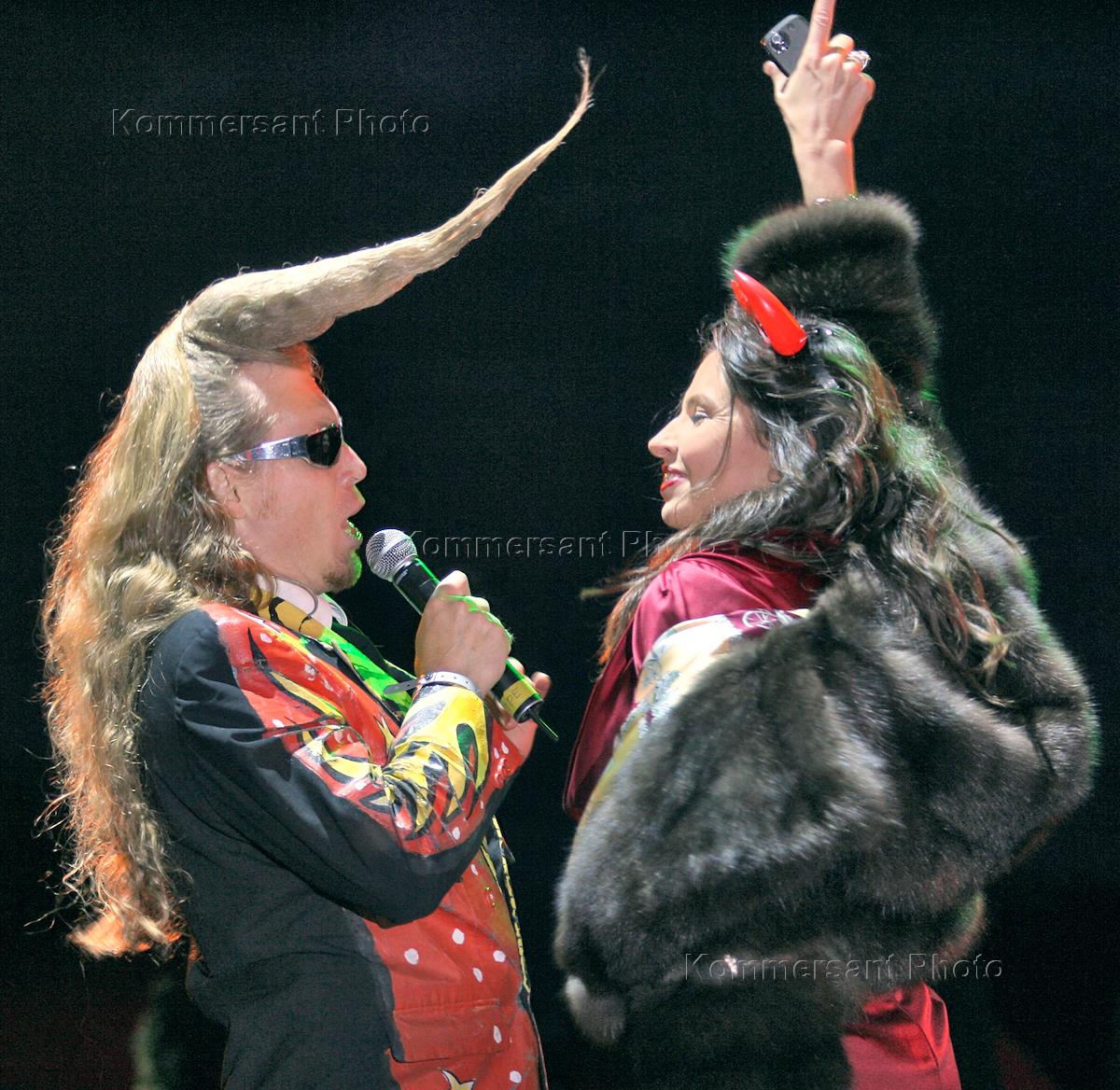 Лидер группы "Машина времени" Андрей Макаревич (слева) на вечеринке, посвященной 13-ой годовщине…