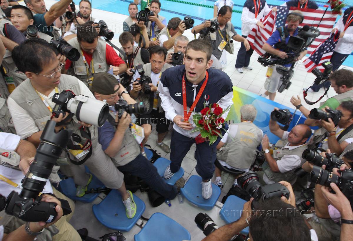 XXIX Летние Олимпийские Игры в Пекине. Американский спортсмен Майкл Фелпс после победы в эстафете…