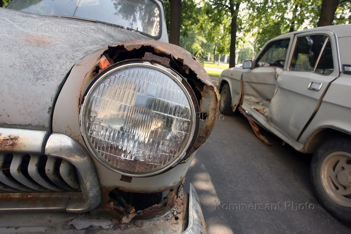 Старые автомобили припаркованные у жилых корпусов Московского государственного университета (МГУ)…