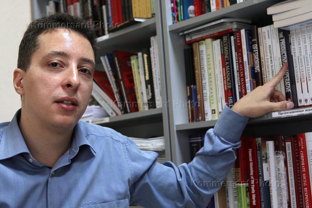 Алексей Ильин, главный редактор компании "Альпина бизнес-букс" интервью в рабочем кабинете.