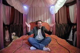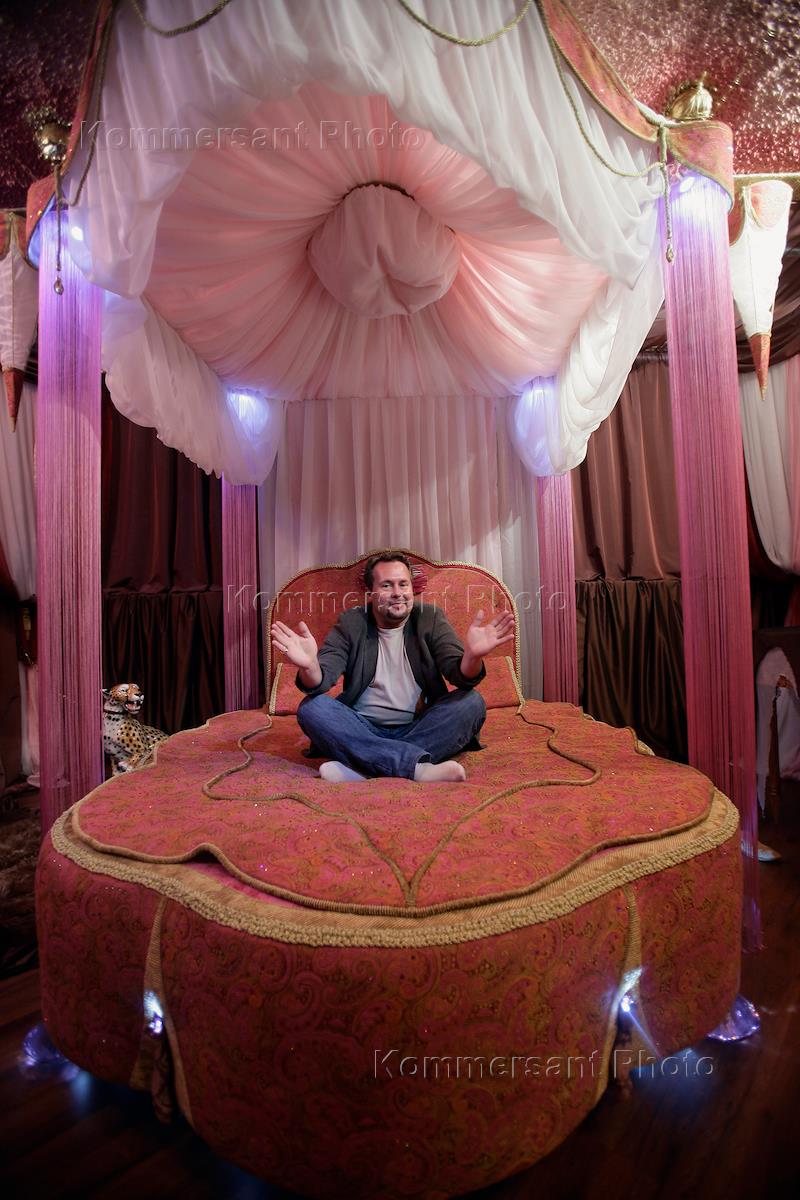 Владелец Мастерской-студии аристократических кроватей Михаил Крючков во время интервью.