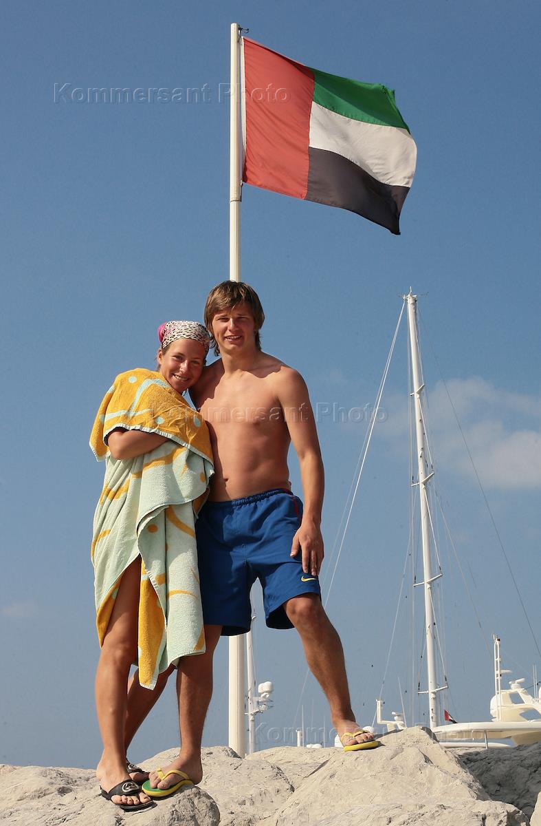 Игрок сборной России по футболу Андрей Аршавин с женой Юлей на отдыхе в Дубаи.