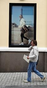 Прохожий на фоне витрины бутика "Louis Vuitton" на улице Большая Дмитровка.