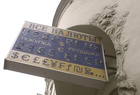 Вывеска пункта обмена валюты на Кузнецком мосту.