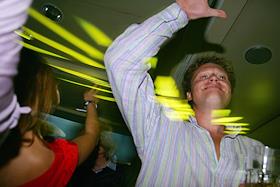 Президент компании "Mirax Group" Сергей Полонский (слева) с подругой Юлей (спиной) на вечеринке от…