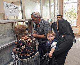 Выдача денежной помощи населению города Цхинвала. Окошко выдачи денег.