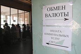 Выдача денежной помощи населению города Цхинвала. Объявления-указатели "обмен валюты", "оплата…