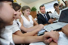 Рабочая поездка президента России Дмитрия Медведева в Краснодарский край. город КОРЕНОВСК- С учениками школы №18.