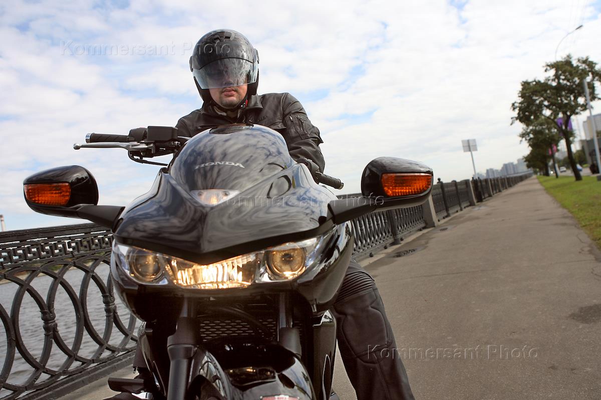 Генеральный директор Московского Ювелирного завода Денис Адамский на мотоцикле "Honda DN-01".