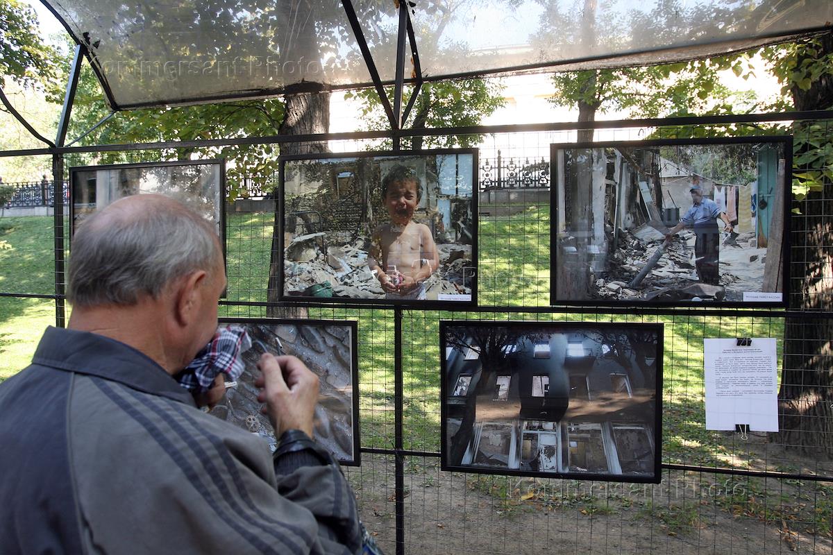 Однодневная выставка фотографий "Южная Осетия. Раны" прошла на Гоголевском бульваре.