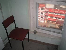 Жанровая фотография. Место для курения у окна с видом на здание магазина сети "Арбат Престиж".