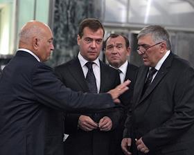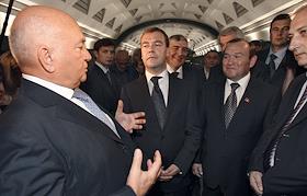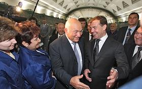 Мэр Москвы Юрий Лужков (на первом плане слева) и президент России Дмитрий Медведев (на первом плане…