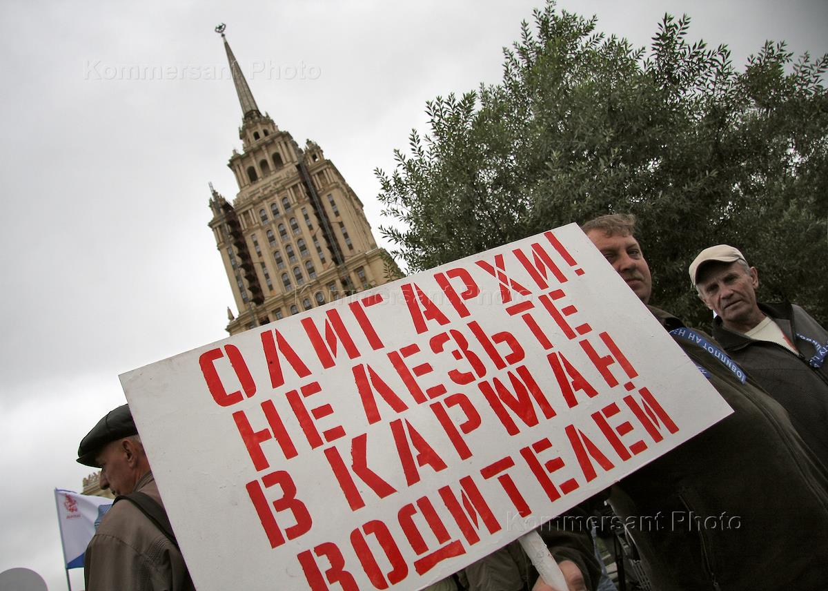 Митинг профсоюзов против роста цен на топливо в сквере у гостиницы Украина.