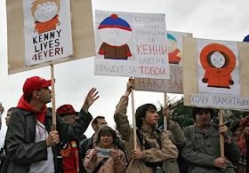 Пикет в защиту мультсериала "Южный парк" (South Park) на телеканале 2x2 прошел в Новопушкинском сквере.